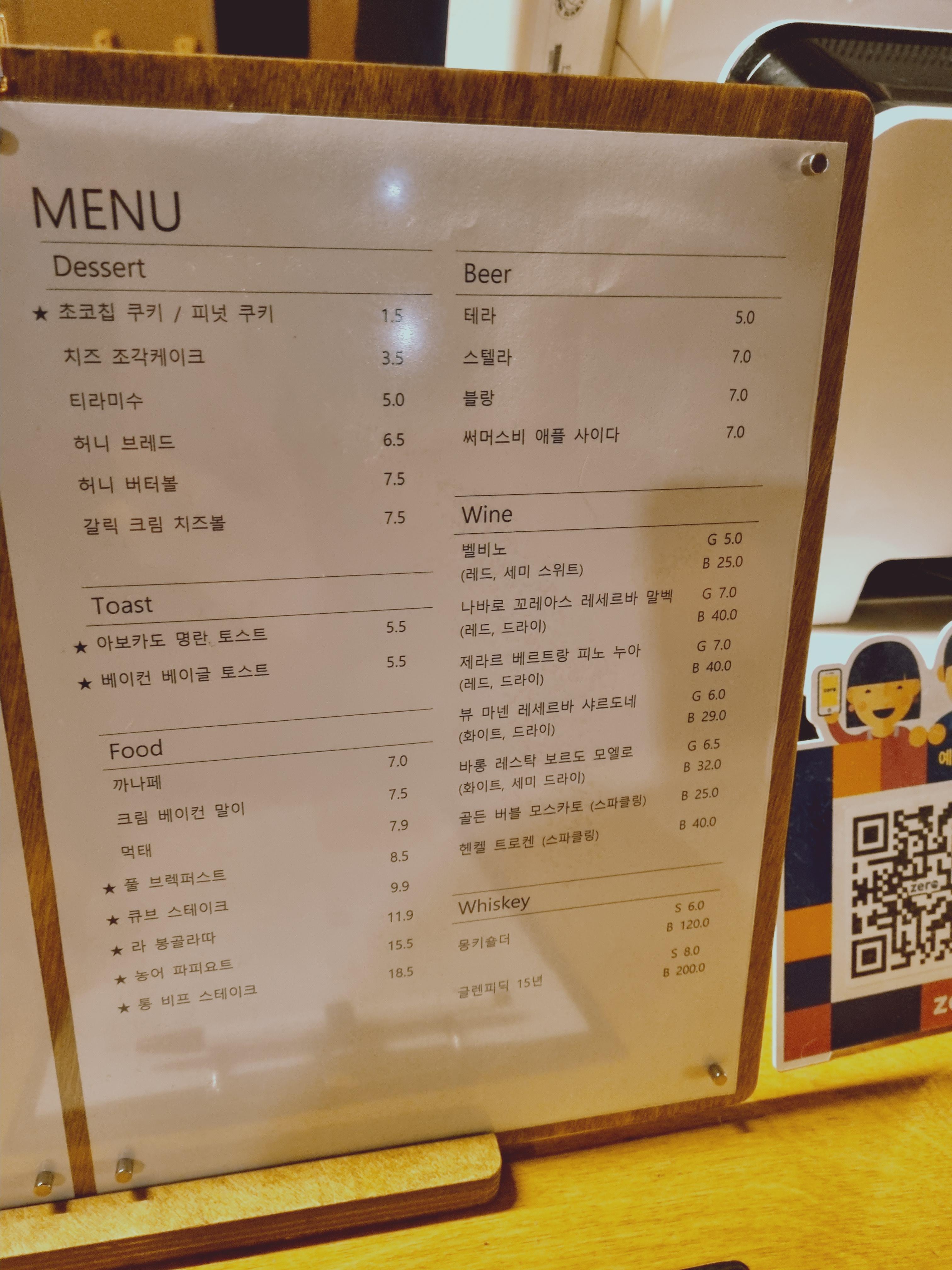 커피와 브런치 메뉴를 판매하고 와인과 맥주, 곁들여 먹는 안주까지 팔고 있는 곳이었어요.