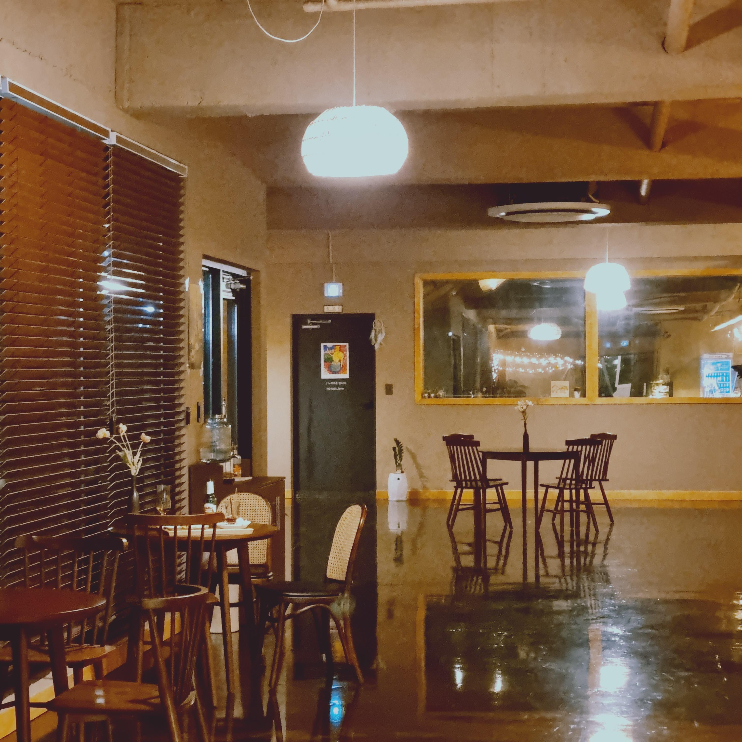 자리가 넓으니 저희끼리 얘기할 때도 참 좋더라고요. 입구 쪽에는 미니 포토존처럼 꾸며놓았길래 한 장 찍어봤어요.