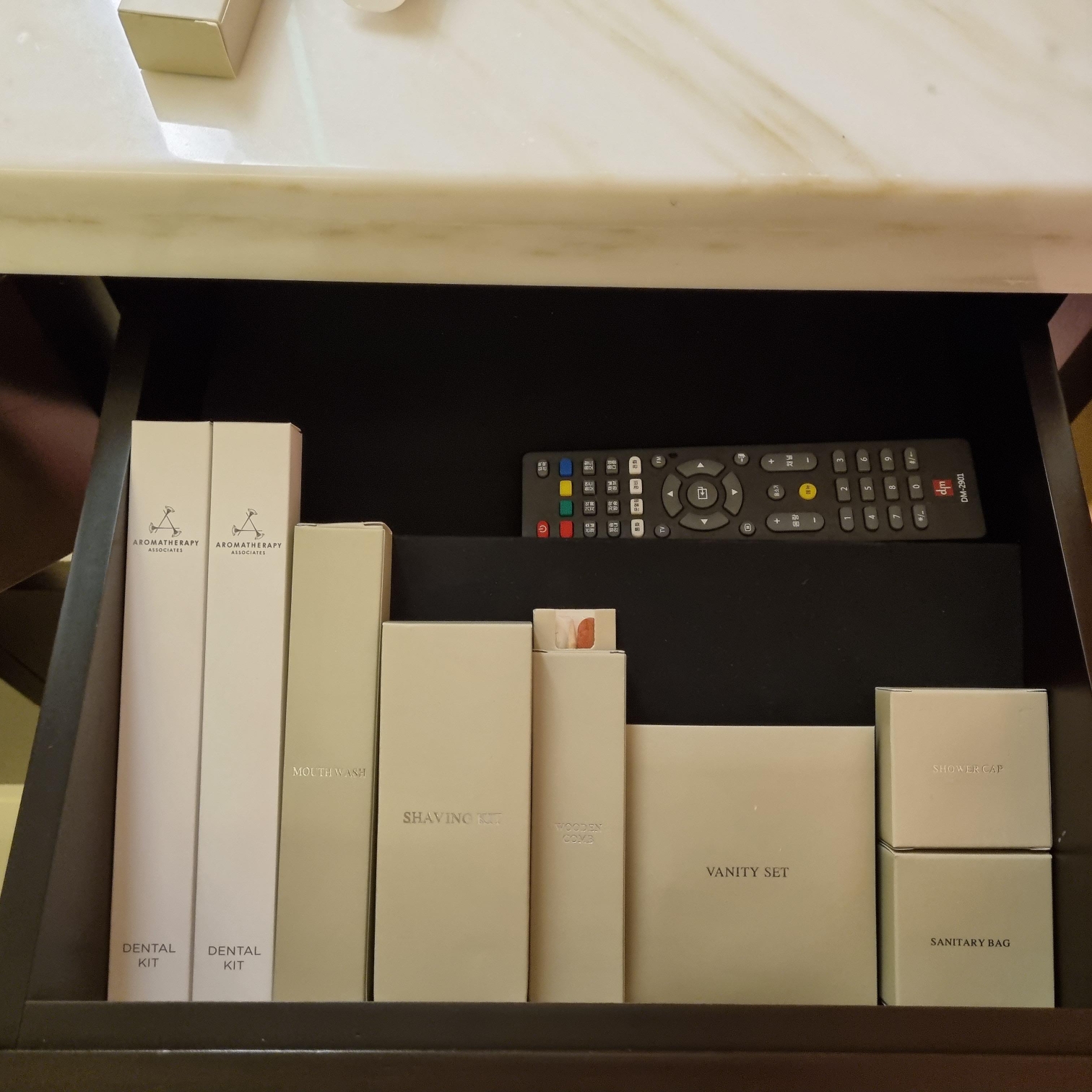 요즘 환경보호문제로 어메니티가 제공되지 않는 호텔 많은데요. 동대문 jw 메리어트호텔 어메니티 꽉차있습니다. 사실 환경도 신경써야 되지만 고객 입장에서는 이렇게 꽉 차있는 어메니티 너무 좋거든요. 일회용칫솔, 빗, 면도기, 손톱정리기 등 일반적인 어메니티보다 더 많이 있습니다.